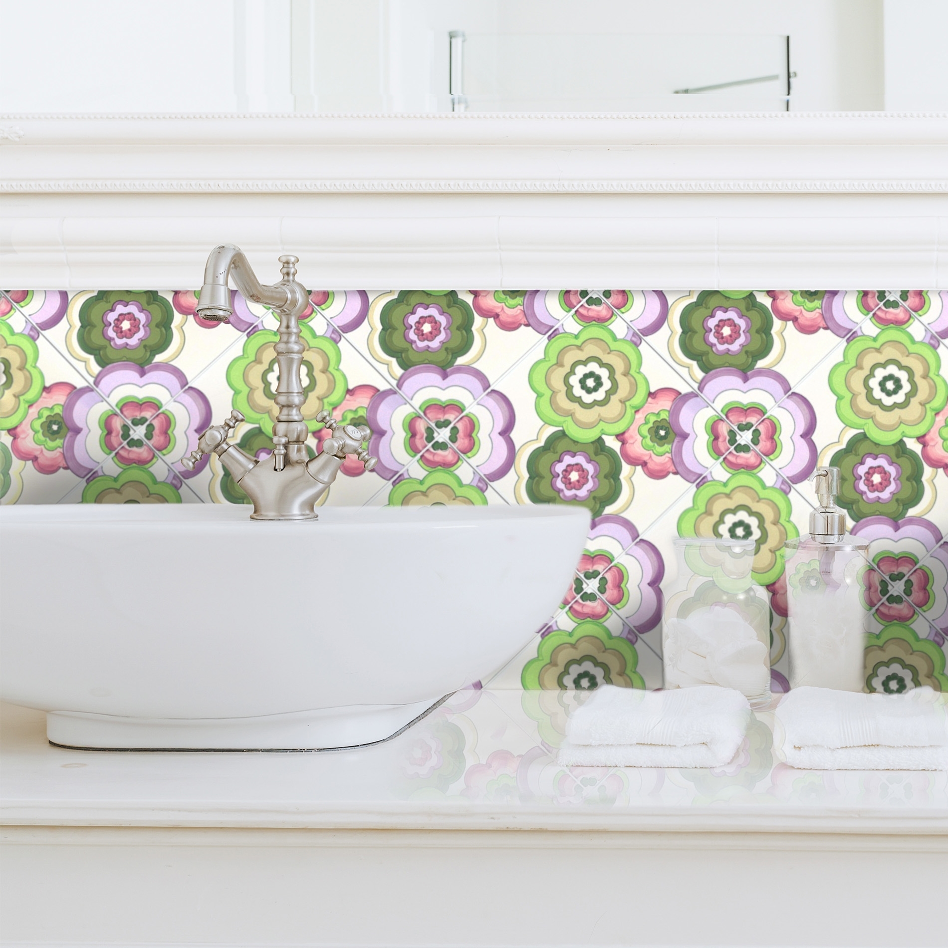Combinazioni personalizzate di colori e decori su fondo bianco vietri per ambienti raffinati e unici. Formato standard cm 20x20.
