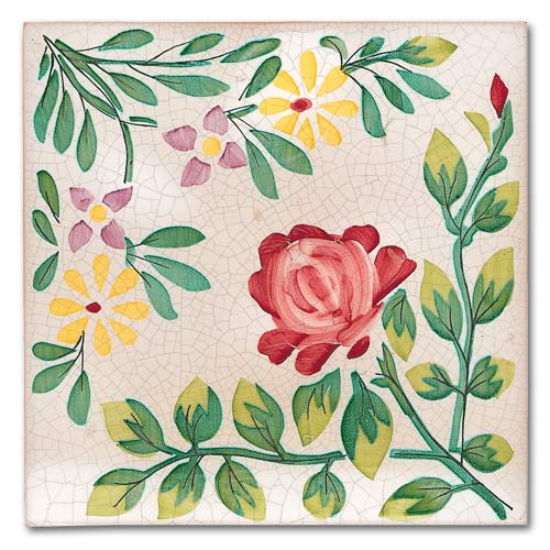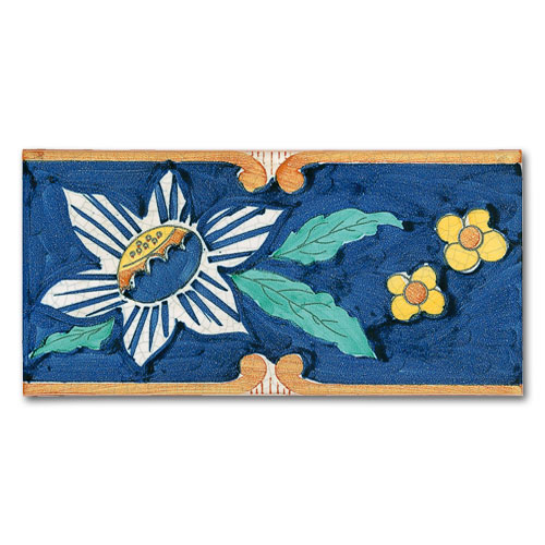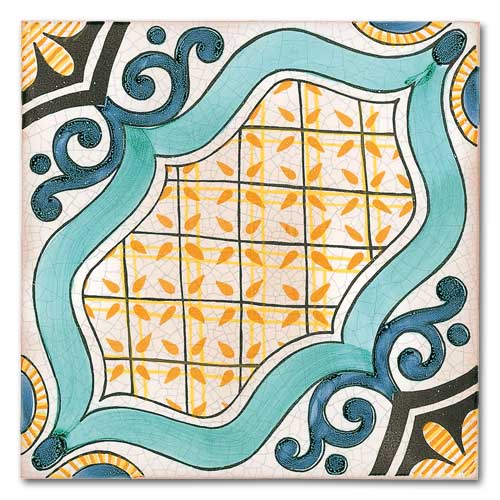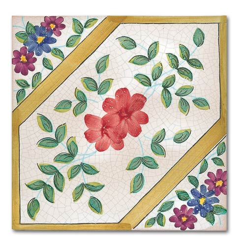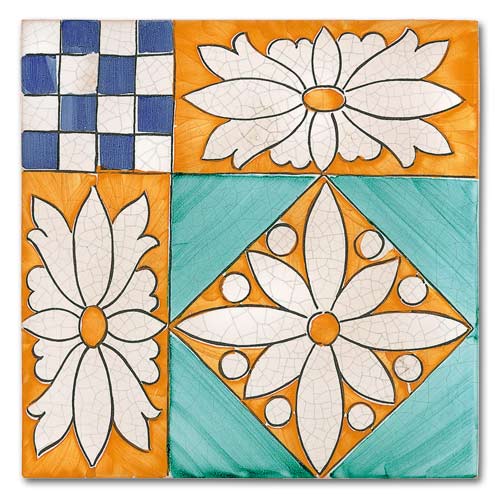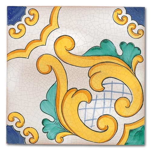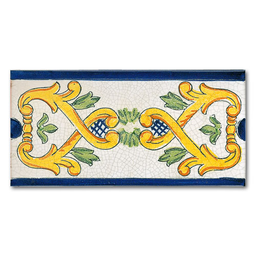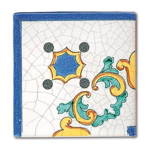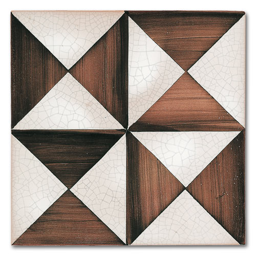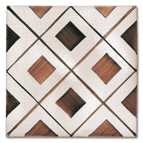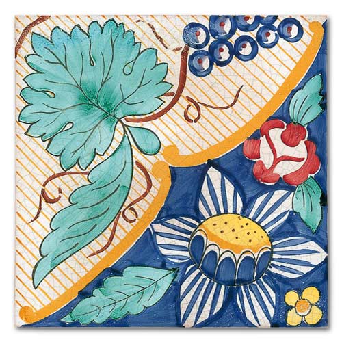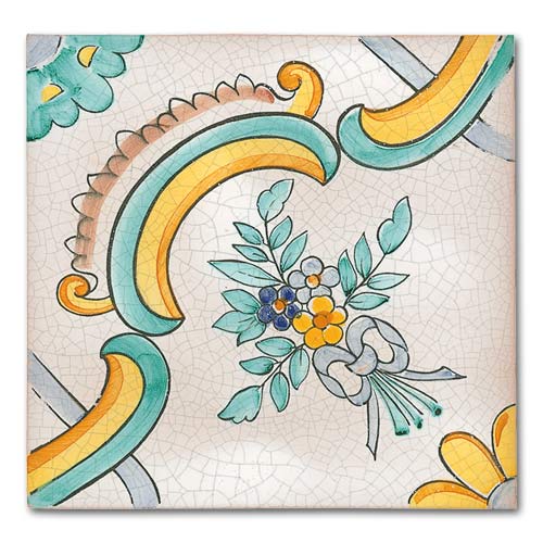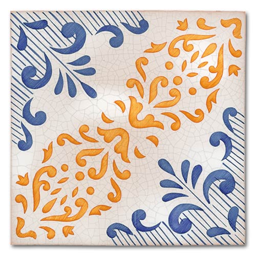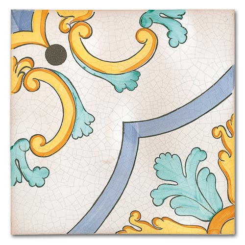 Collezione che racconta la cultura, la storia, le tradizioni di oltre due secoli. Decorato a mano, smalto craquelè su base in cotto artigianale spessore 1,4 cm. Su richiesta base industriale spessore 1 cm.